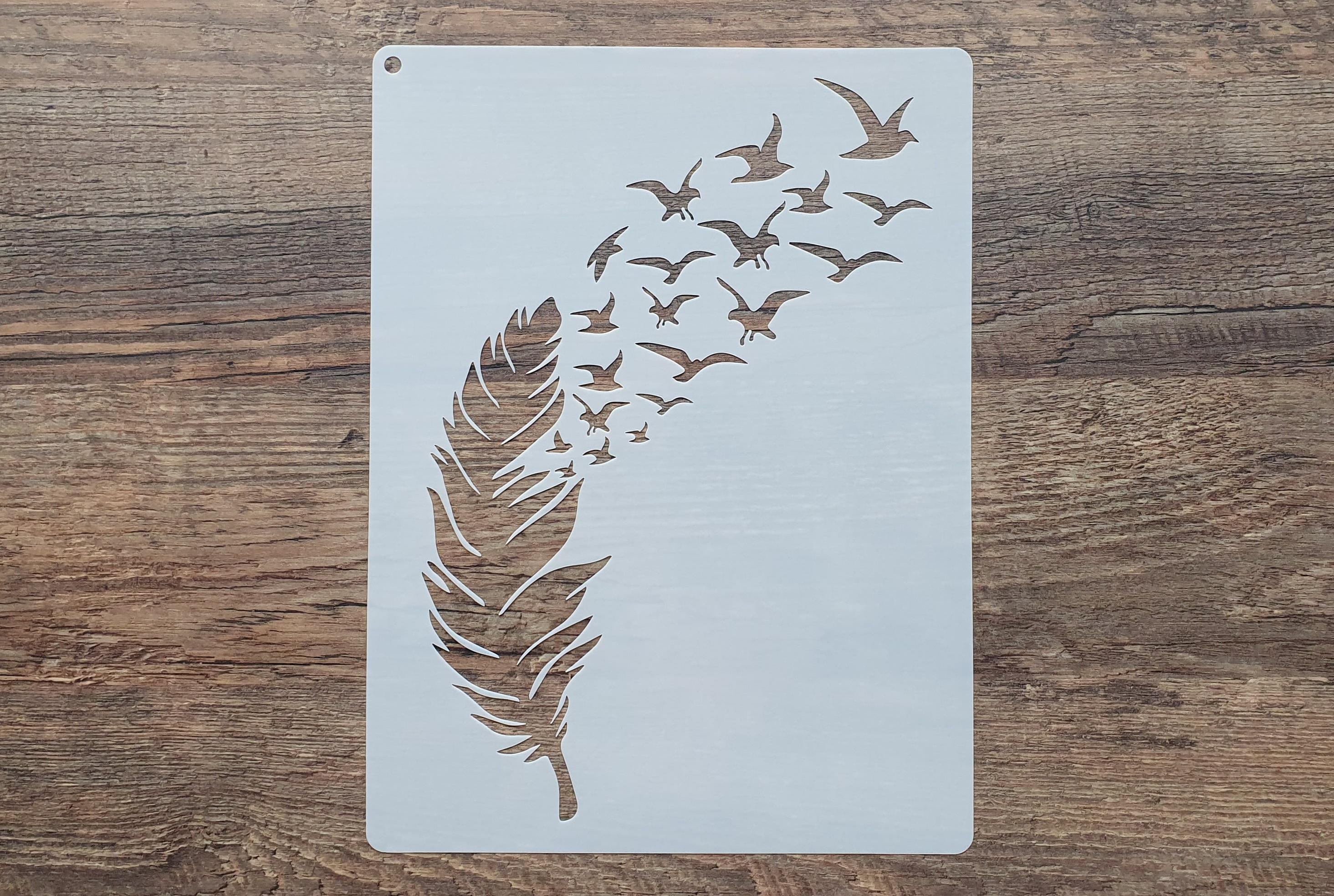 Mobile Preview: Schablone Feder mit Vögeln IV DIN A 4
