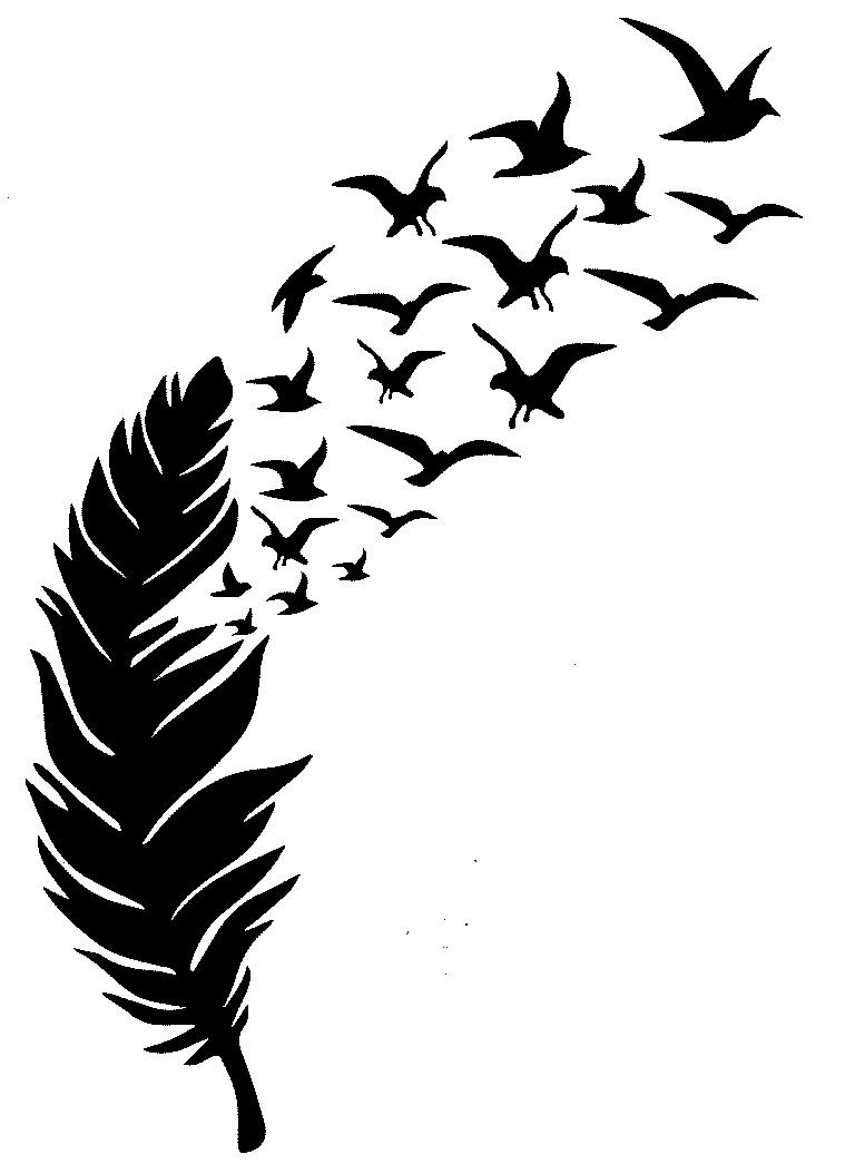 Preview: Schablone Feder mit Vögeln IV DIN A 4