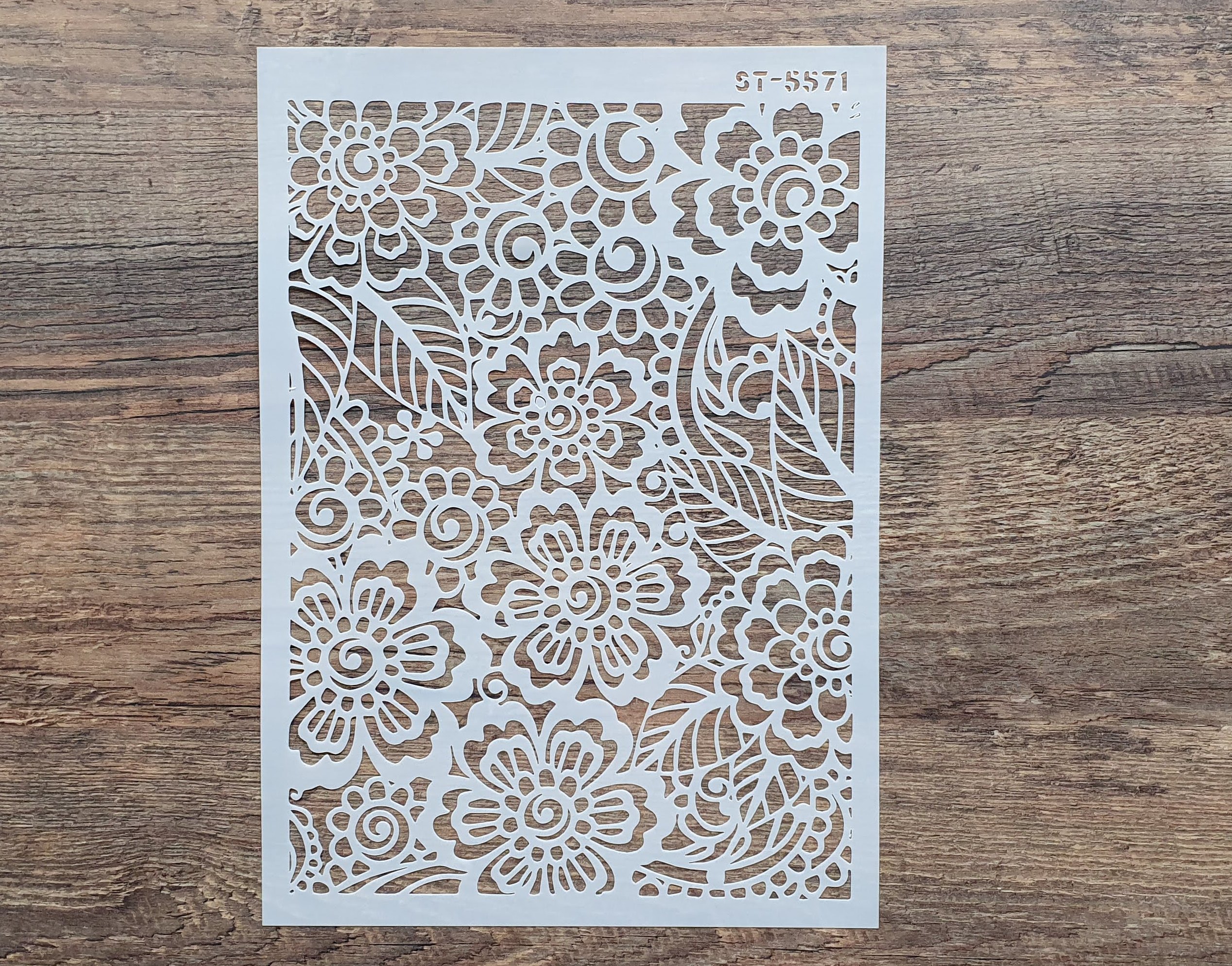 Du kannst die Schablone mit den unterschiedlichsten Farben oder Pasten verwenden. Geeignet z.B. für Airbrush, Tupftechniken, Spachteln, Spraylack oder einfach ausmalen.