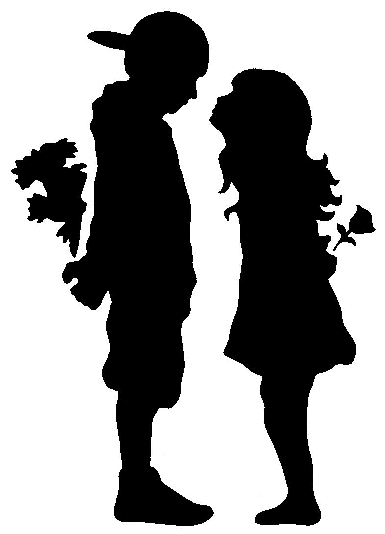 Motiv: Junge und Mädchen mit Blumen vor dem ersten Kuss DIN A 4