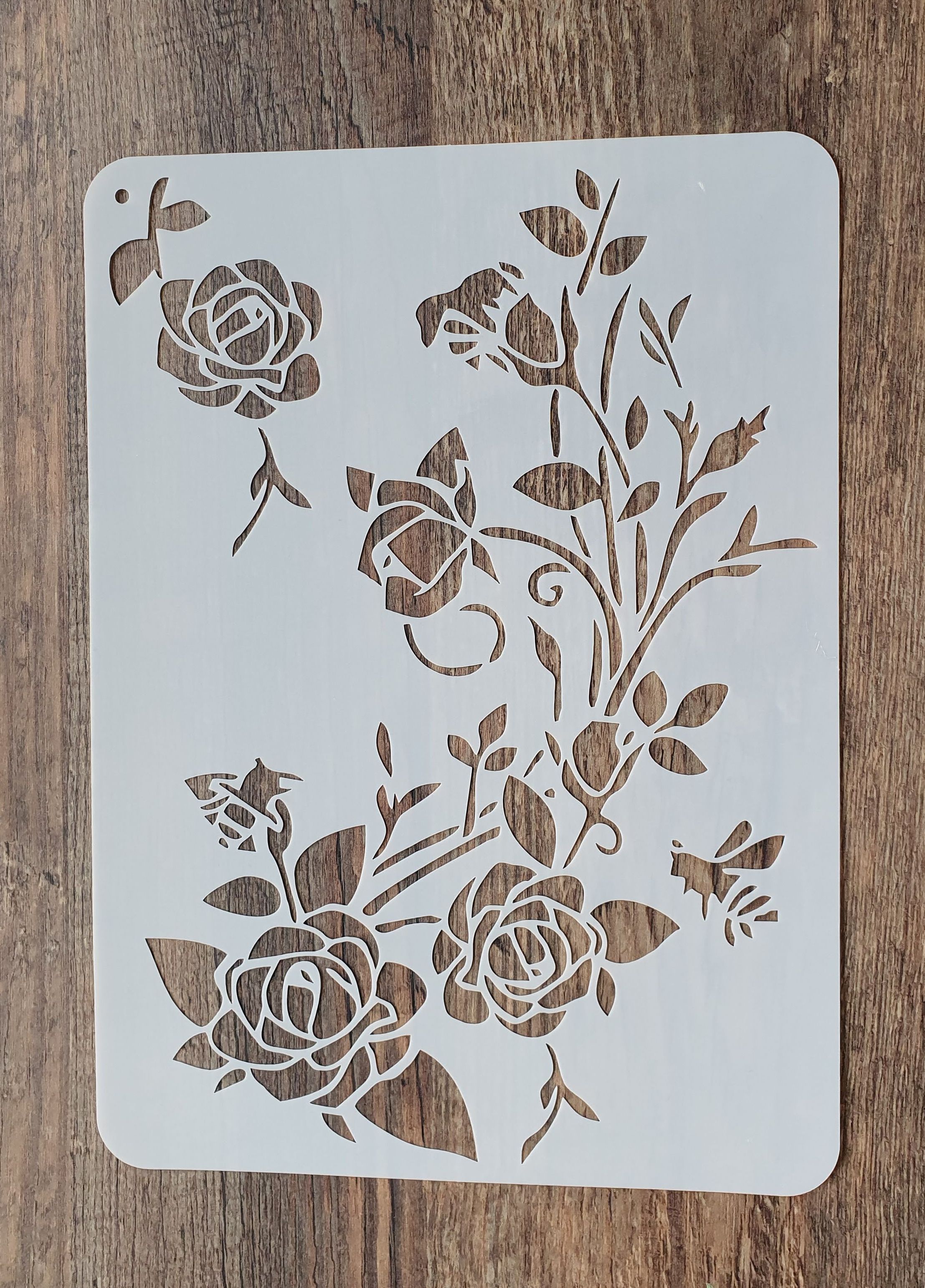 Motiv: Schablone mit Rosenzweig und Rosenblüten