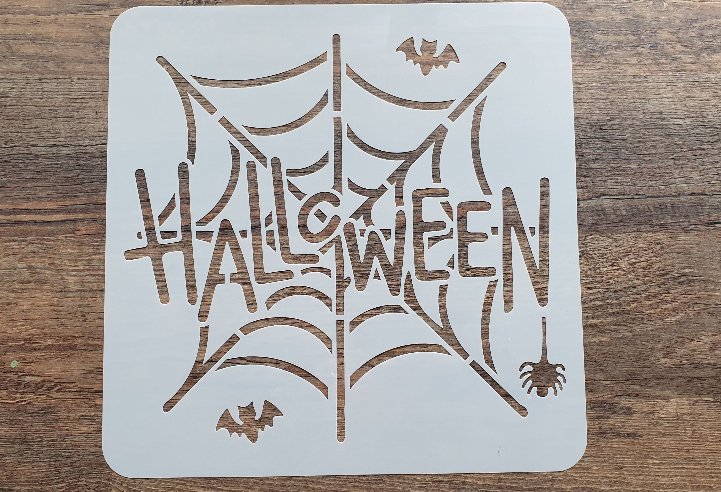 Motiv: Halloweenschriftzug vor einem Spinnennetz