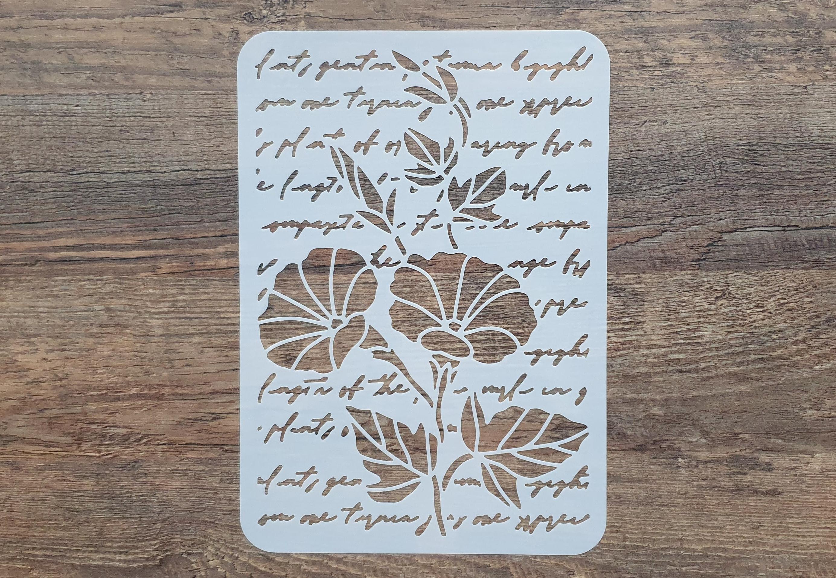 Preview: Schablone mit Phantasietext in Schreibschrift und Blumen DIN A 4